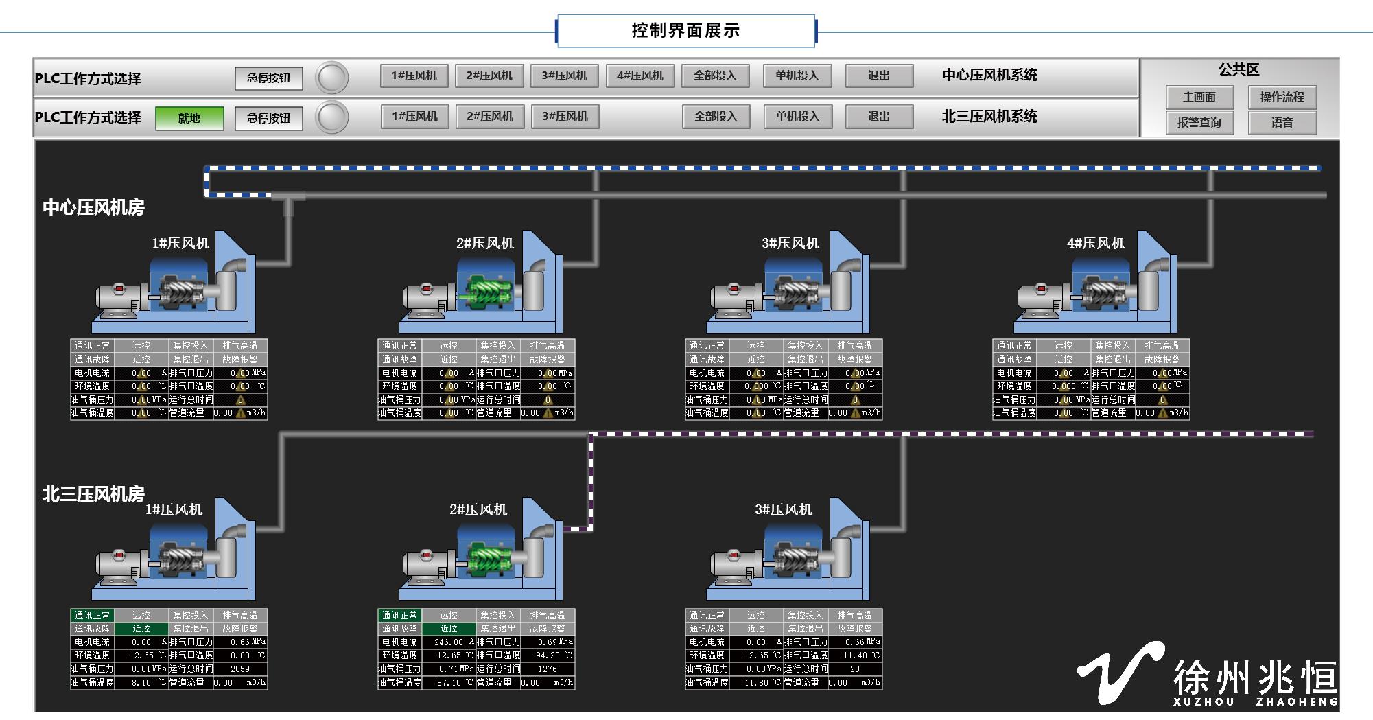 為了使管網(wǎng)壓力保持穩(wěn)定,壓風(fēng)機遠程監(jiān)控系統(tǒng)根據(jù)管網(wǎng)壓力,自動對一組空壓機的啟動、停止、加載、卸載進行統(tǒng)一管控,無需人為參與。不僅避免了設(shè)備反復(fù)開停對設(shè)備造成的損傷和對能源的浪費,又降低了工人的勞動強度。