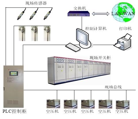 壓風(fēng)機能否安全、可靠、高效的運行,涉及到整個礦井安全生產(chǎn)和經(jīng)濟效益。目前,我國煤礦壓風(fēng)機系統(tǒng)主要采用人員值守、定期巡視、定期檢修、定期切換風(fēng)機的方式,這種方式無法及時發(fā)現(xiàn)壓風(fēng)機系統(tǒng)潛在的危險,甚至出現(xiàn)緊急情況下不能及時送風(fēng)、壓風(fēng)機帶病運行現(xiàn)象。我公司根據(jù)生產(chǎn)過程中的實際需求,運用計算機監(jiān)測和PLC技術(shù),研發(fā)了一套地面壓風(fēng)機遠程監(jiān)控系統(tǒng)。